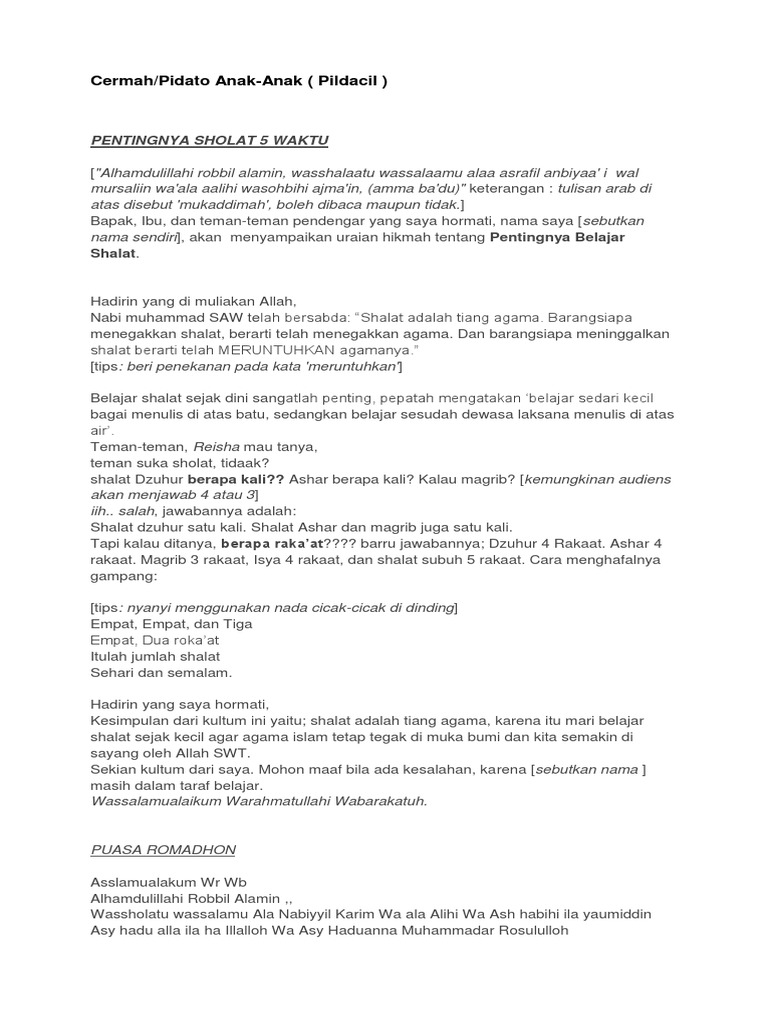 Izin untuk dilatihkan kepada anak-anak smg bermnfaat jun - Maret 29 2012 pukul 300 am. Al-hamdulillaahi rabbil aalamiin wabihii nastaiinu alaa umuuriddunya waddiiin asholaatu wassalaamu alaa asyrafil anbiyaai wal mursaliin sayyidinaa wamaulaana Muhammadin wa alaa alihii washahbihii ajmain amma badu. Menyampaikan pidato tidaklah melulu harus panjang dan menyita waktu.